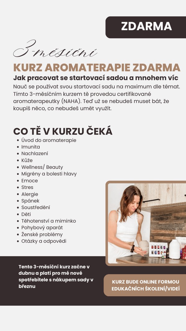 PS: NAVÍC ODE MĚ NYNÍ ZÍSKÁŠ 3-MĚSÍČNÍ ONLINE KURZ AROMATERAPIE JAKO DÁREK.